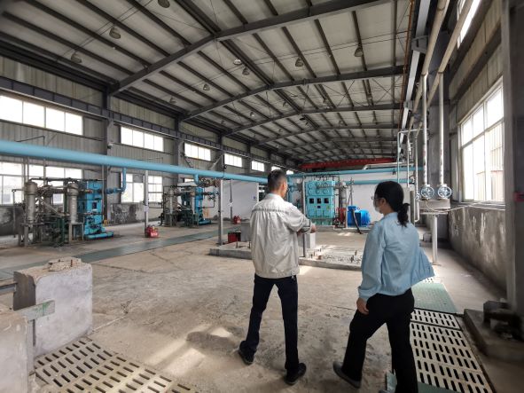 無錫市圣馬氣體有限公司舟山分公司專為金海智造股份有限公司配套供應(yīng)氧氣,地址位于舟山市岱山縣長涂鎮(zhèn)仙草潭金海智造股份有限公司內(nèi),一期工程于2008年4月建成并投入使用,二期工程于2011年10月建成投產(chǎn),但2013年又拆除了原二期工程所安裝的空分設(shè)備(保留二期工程中5只100 m3中壓氧氣儲(chǔ)罐),目前有1套1500Nm3/h制氧能力的空分裝置,年制氧能力達(dá)到1178萬N m3,大部分氧氣通過管道輸送至船廠用氣崗位,少量通過匯流排充裝至鋼瓶,供船廠零星用氣崗位使用(未安裝氧氣管道崗位),公司內(nèi)具備年充裝氧氣7.2萬瓶的能力,公司現(xiàn)有職工8人。公司于2018年8月9日取得浙江省安全生產(chǎn)監(jiān)督管理局頒發(fā)的安全生產(chǎn)許可證證書編號(hào)為(ZJ)WH安許證字〔2018〕-L-0304,許可范圍:年產(chǎn)工業(yè)氧氣1178萬Nm3、氧氣7.2萬瓶。2017年12月21日取得浙江省質(zhì)量技術(shù)監(jiān)督管理局頒發(fā)的氣瓶充裝許可證,編號(hào)為TS4233704—2021,有效期至2021年11月2日。2020年6月8日取得危險(xiǎn)化學(xué)品安全標(biāo)椎達(dá)標(biāo)證書,證書編號(hào): ABQ IIIWH舟202000032,有效期至2023年6月。