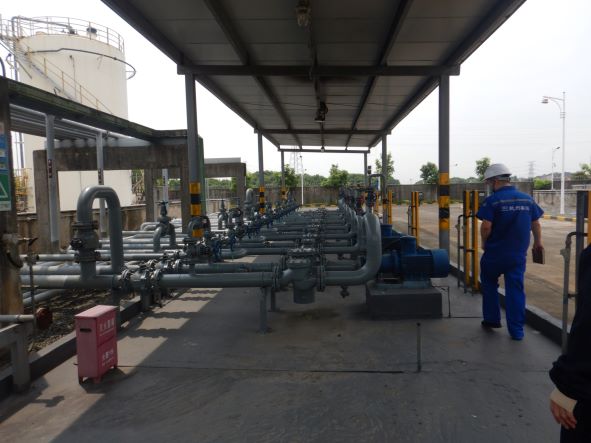 該公司總占地面積為300畝(200000㎡),經營范圍包括陸域庫區和碼頭:碼頭包含500噸級重力式碼頭泊位8個(其中成品油泊位4個,液體化工泊位3個,固定吊機泊位1個)。后方陸域含24個總儲量為12m3的成品油儲罐、39個總儲量為3.03m3的化工品儲罐。四個倉庫總建筑面積4096㎡(閑置)。并配套相應行政和生產輔助設施。該公司庫區總容量約15.03m3,計算總容量為10.83m3,根據《石油庫設計規范》(GB50074-2014)第3.0.1條的劃分標準,該公司庫區為一級油庫。