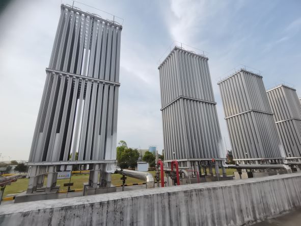 臺州華潤燃氣有限公司所屬海濱液化天然氣(LNG)儲配站位于臺州市路橋區(qū)金清鎮(zhèn)濱海工業(yè)區(qū)十條河以西,由公司運行管理部進行管理。儲配站20138月建成,20139月投入試運行,站區(qū)原有4150m³LNG儲罐,總存儲量為250噸,8臺氣化量3000Nm³/h的空溫式氣化器,設(shè)計小時最大供氣量為12000Nm³/h