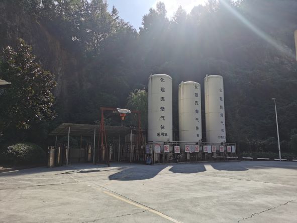 湖州市物資化建民爆有限公司下屬氣體充裝站位于湖州市西的湖州市康山街道東山村莘家浜,氣體充裝站設置有315m3低溫液體貯槽、充裝車間特氣倉庫(原特氣車間)。現有員工12人。