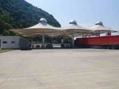 加油站設置汽油卸油和加油油氣回收系統。加油區設置加油罩棚,罩棚為鋼結構罩棚。罩棚下設置2臺雙油品四槍電腦稅控加油機,2臺單油品(柴油)四槍電腦稅控加油機(罐區潛油泵供油)以及1尿素液加注機;埋地油罐區設有430m³埋地臥式單層鋼制油罐(非車道罐),設防滲罐池。其中30m³汽油罐2只(分別為92#汽油罐、95#汽油罐),230m³柴油罐,油罐總容積折算為90m³(柴油罐折半計入),根據《汽車加油加氣加氫站技術標準》GB50156-2021的相關規定,該加油站為三級加油站。加油站充電區設有1套分體式一機四樁綜合充電系統(功率360kW),根據《綜合供能服務站建設規范》(DB33/T2136-2018)的規定,充電區塊規模為級,屬于三級綜合供能服務站。
